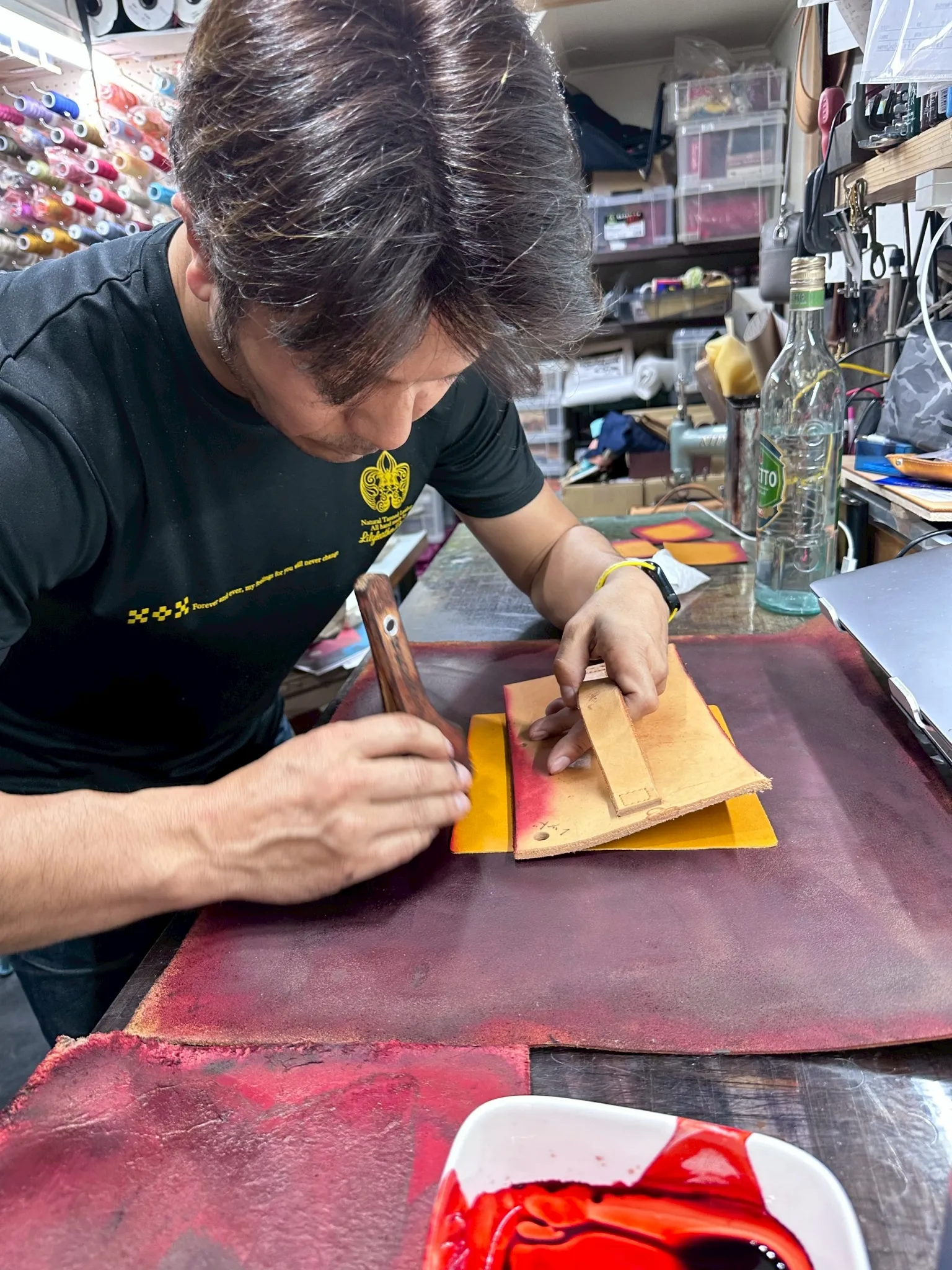 作業内容は型抜きや張り合わせ、コバ磨きなど基礎から学び、週1回の講習で技術を習得。将来的には縫製や染めも挑戦でき、革職人としての就職も目指せます。