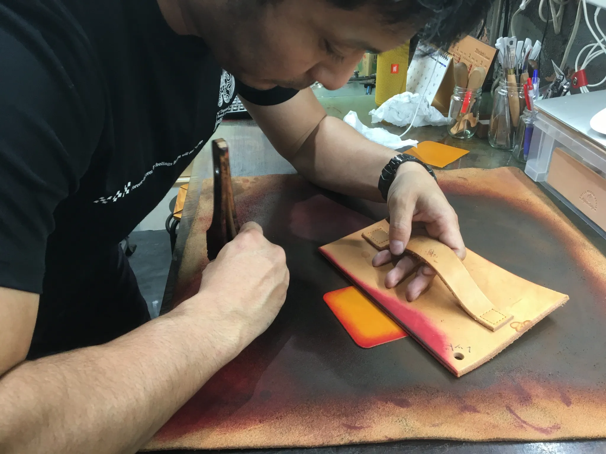 作業内容は型抜きや張り合わせ、コバ磨きなど基礎から学び、週1回の講習で技術を習得。将来的には縫製や染めも挑戦でき、革職人としての就職も目指せます。